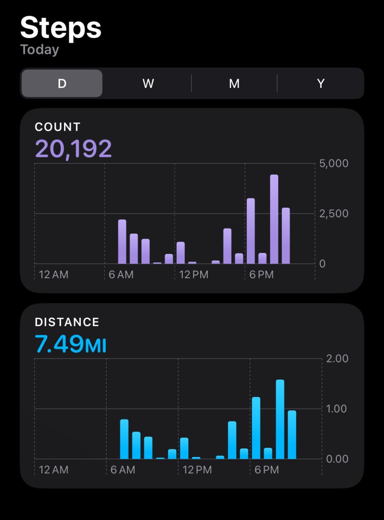 Today is the second day in a row that I accomplished my goal of 20,000 steps–and it was not easy.
